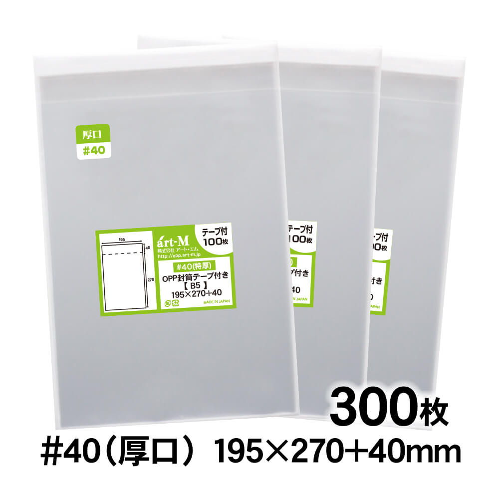 OPP袋 B5 テープ付 300枚 40ミクロン厚(厚口) 195×270+40mm 透明袋 国産