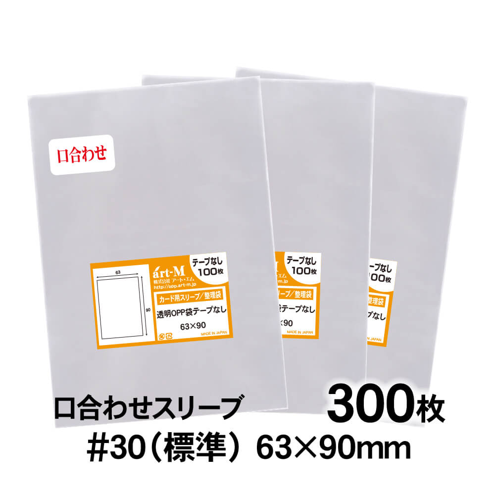 OPP袋 63×90 口合わせ カード用スリーブ テープなし 300枚 30ミクロン厚(標準) 63×90mm 透明袋 国産