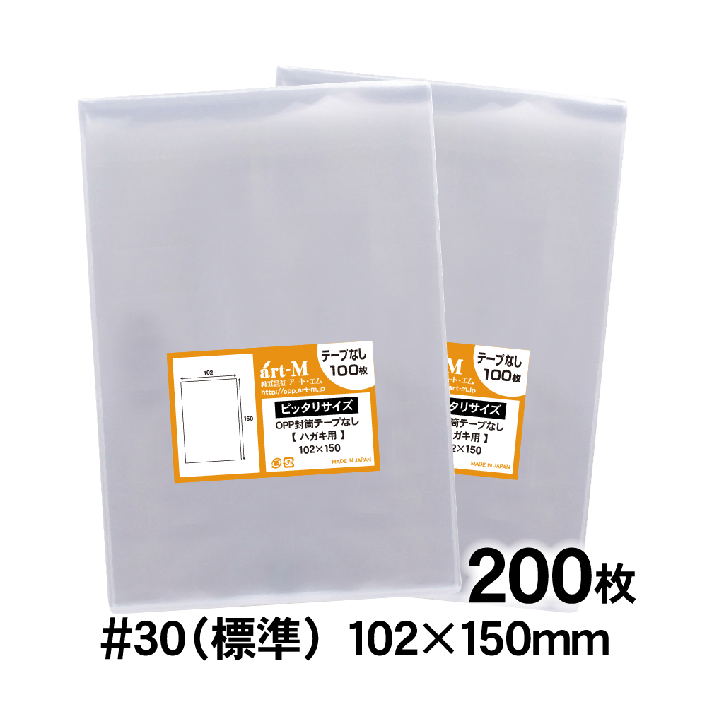 OPP袋 ハガキ超ぴったりサイズ テープなし 200枚 30ミクロン厚(標準) 102×150mm 透明袋 国産