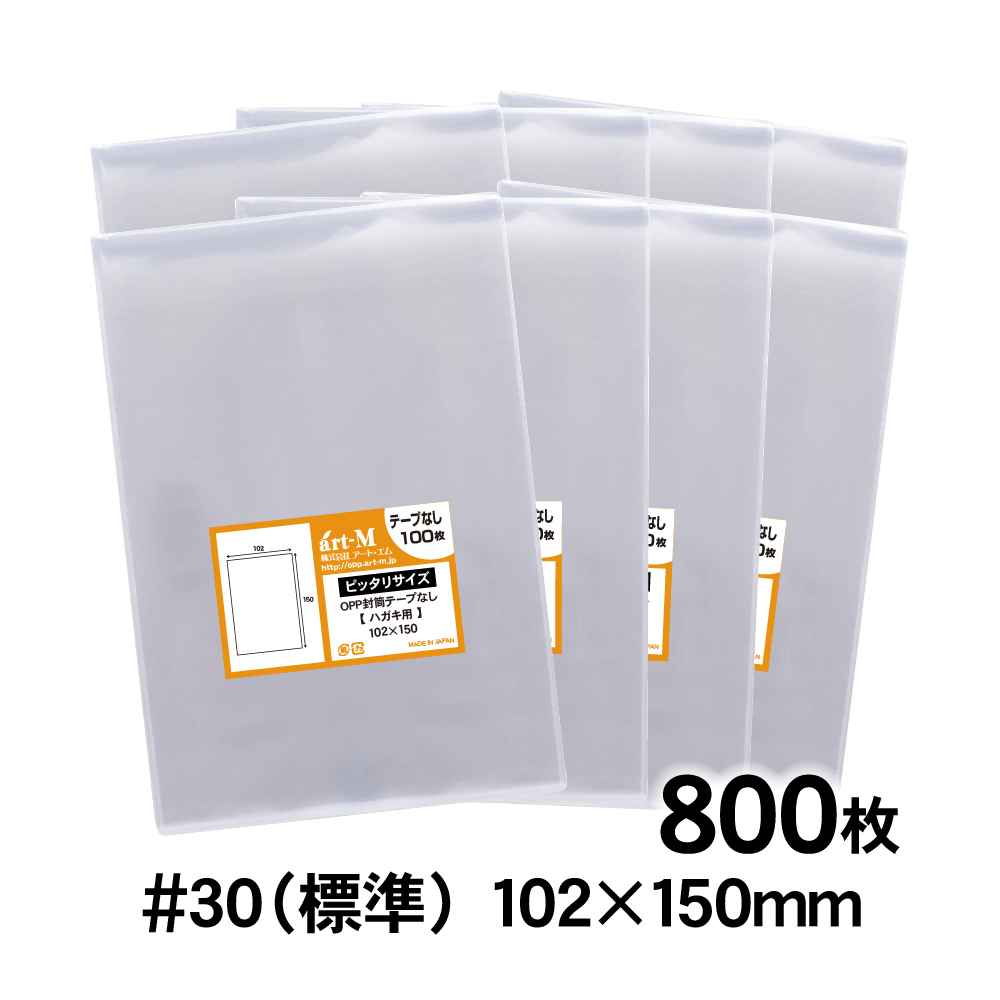 OPP袋 ハガキ超ぴったりサイズ テープなし 800枚 30ミクロン厚(標準) 102×150mm 透明袋 国産
