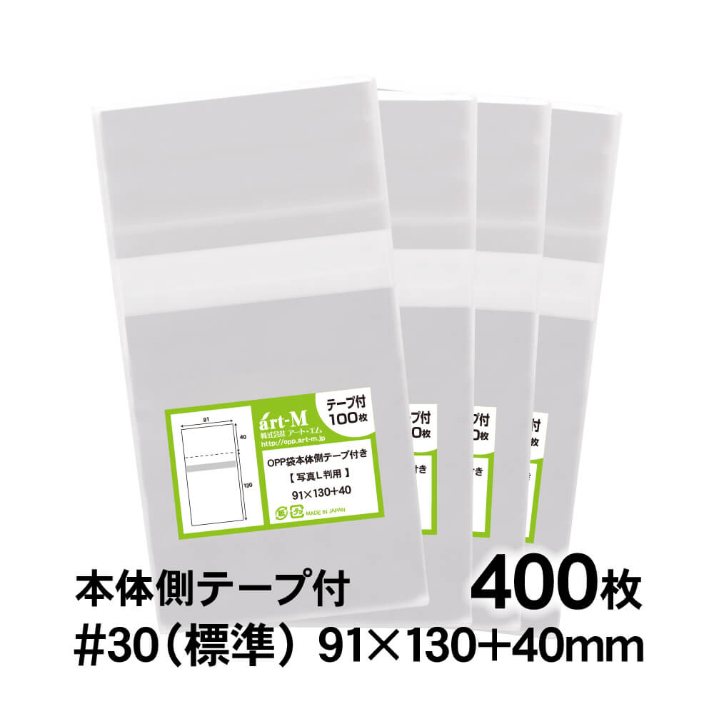 OPP袋 L判サイズ用 本体側テープ付 400枚 30ミクロン厚(標準) 91×130+40mm 国産 透明袋