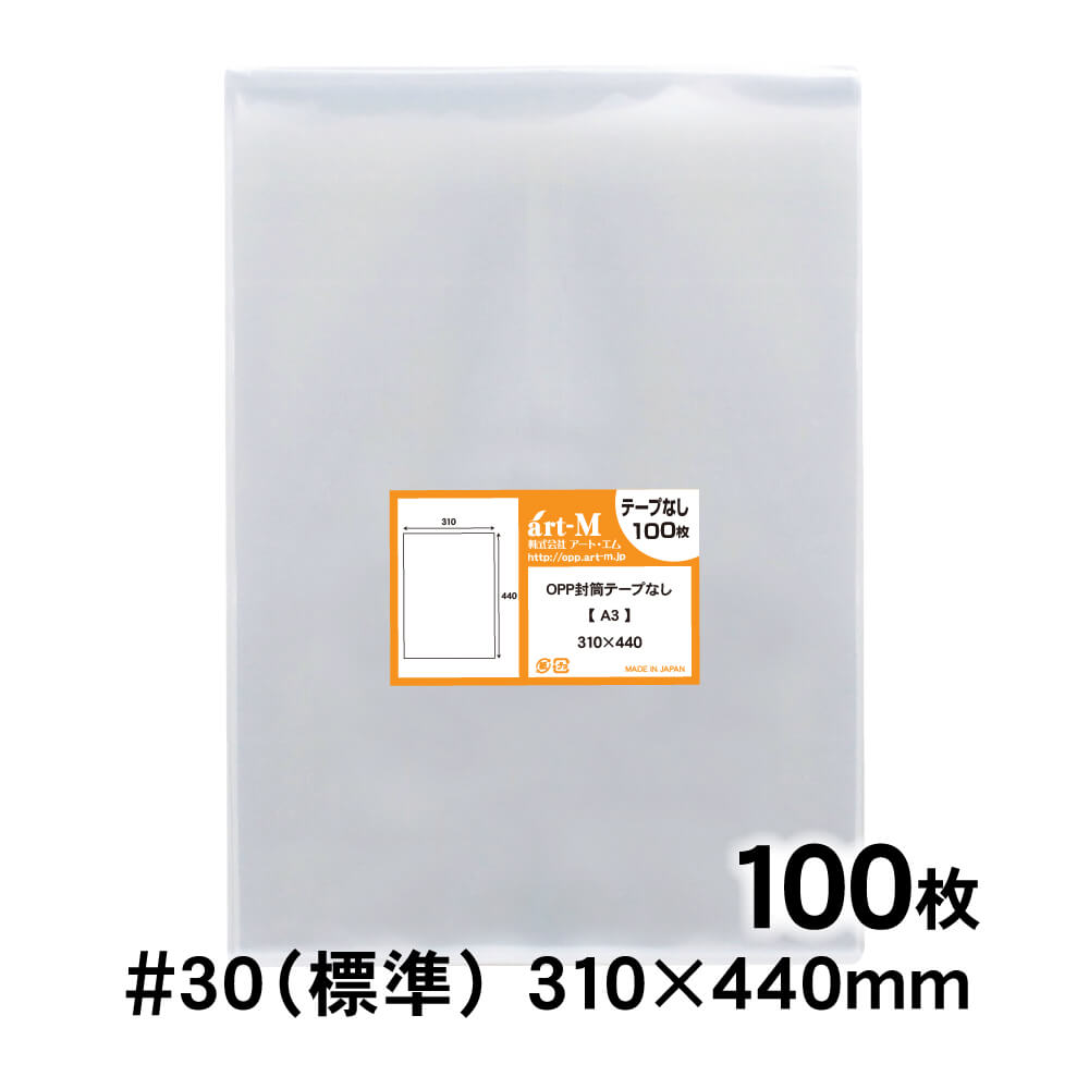 OPP袋 A3 テープなし 100枚 30ミクロン厚(標準) 310×440mm 透明袋 国産 二つ折り発送