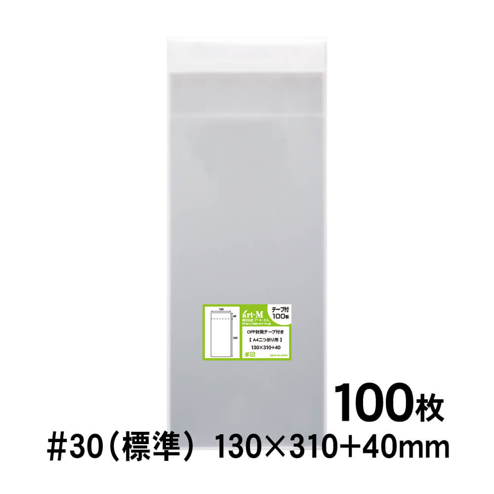 OPP袋 A4サイズ2つ折り テープ付 100枚 透明袋 国産 30ミクロン厚(標準) 130×310+40mm