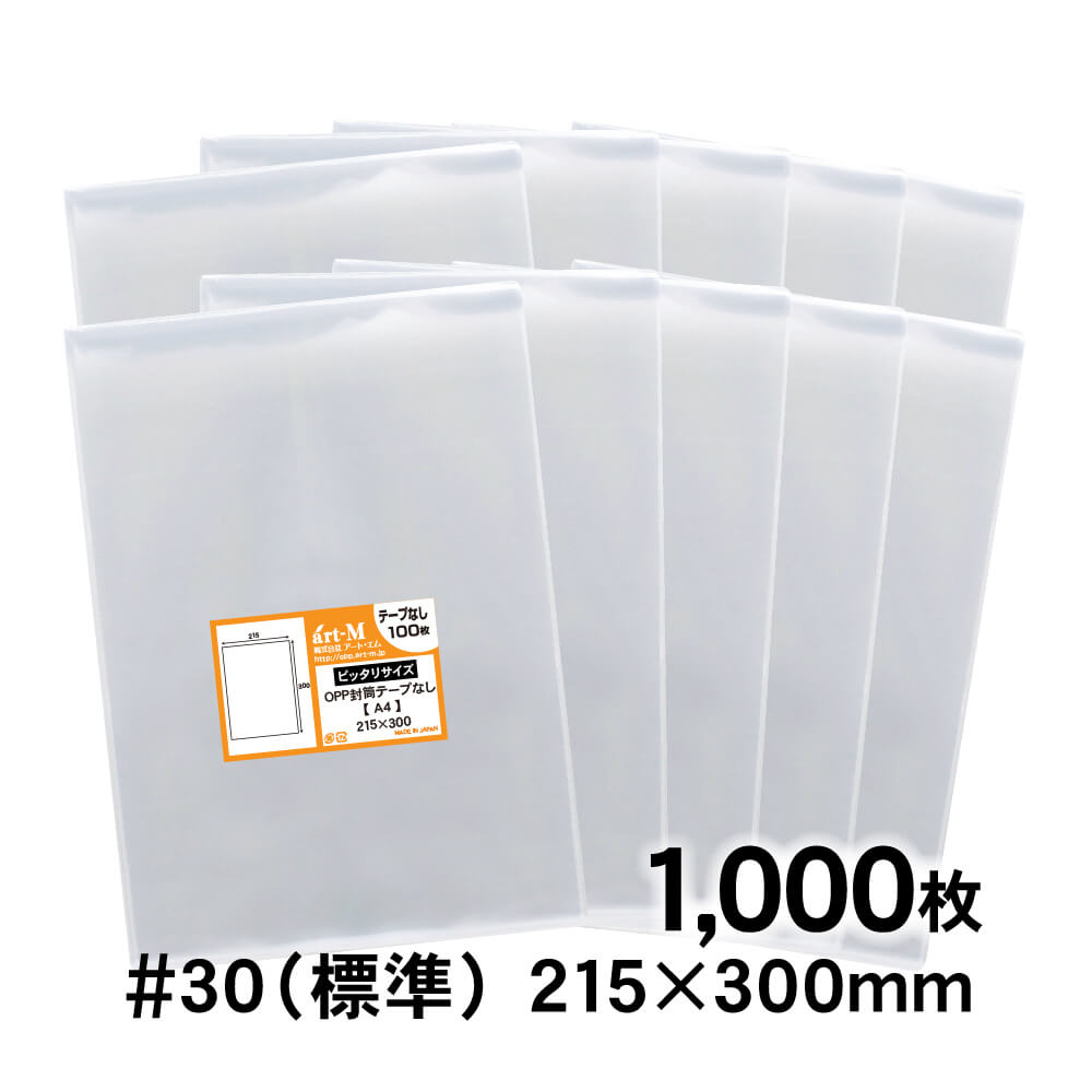 OPP袋 A4ピッタリサイズ テープなし 1000枚 30ミクロン厚(標準) 215×300mm 透明袋 国産