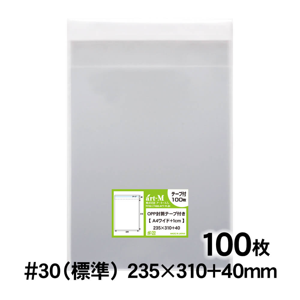 OPP袋 A4ワイド 1cm巾広 テープ付 100枚 30ミクロン厚(標準) 235×310+40mm 透明袋 国産 二つ折り発送