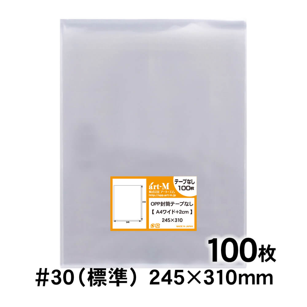 OPP袋 A4ワイド 2cm巾広 テープなし 100枚 透明袋 国産 30ミクロン厚(標準) 245×310mm 二つ折り発送