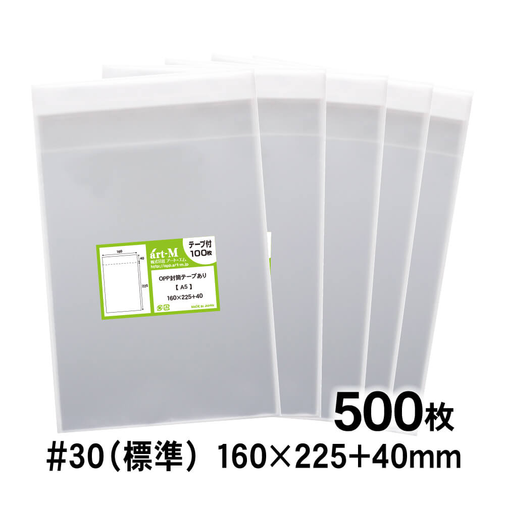 OPP袋 A5 テープ付 500枚 30ミクロン厚(標準) 160×225+40mm 透明袋 国産