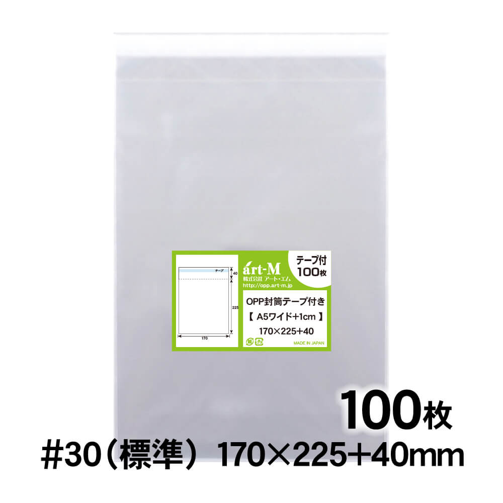 OPP袋 A5ワイド 1cm巾広 テープ付 100枚 透明袋 国産 30ミクロン厚(標準) 170×225+40mm