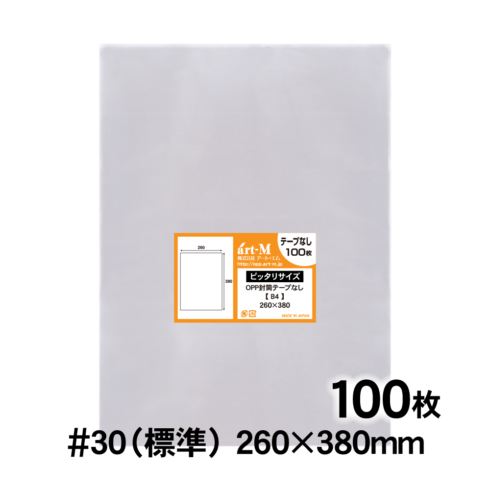 OPP袋 B4ピッタリサイズ テープなし 100枚 30ミクロン厚(標準) 260×380mm 透明袋 国産 二つ折り発送