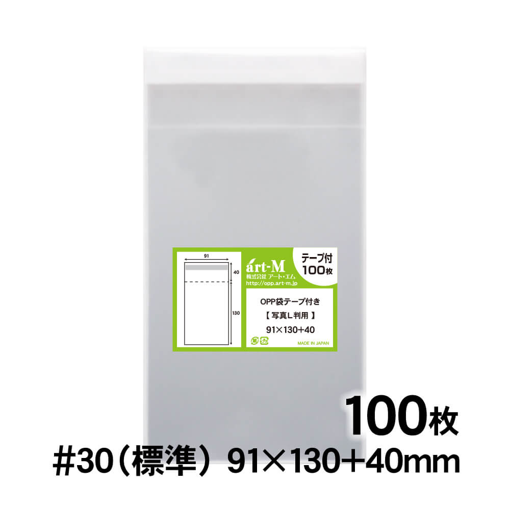 OPP袋 L判サイズ用 テープ付 100枚 国産 30ミクロン厚(標準) 91×130+40mm 透明袋