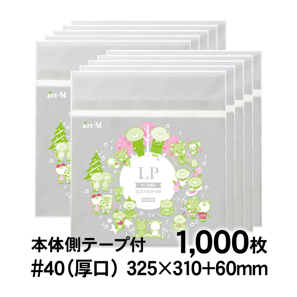OPP袋 LP レコード用 本体側テープ付 1000枚 40ミクロン厚(厚口) 325×310+60mm 透明袋 国産