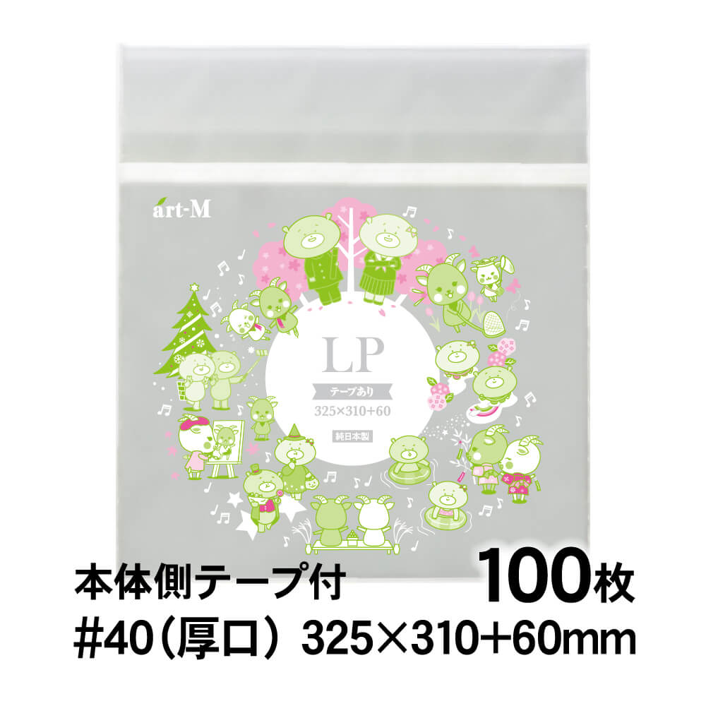 OPP袋 LP レコード用 本体側テープ付 100枚 透明袋 国産 40ミクロン厚(厚口) 325×310+60mm 二つ折り発送