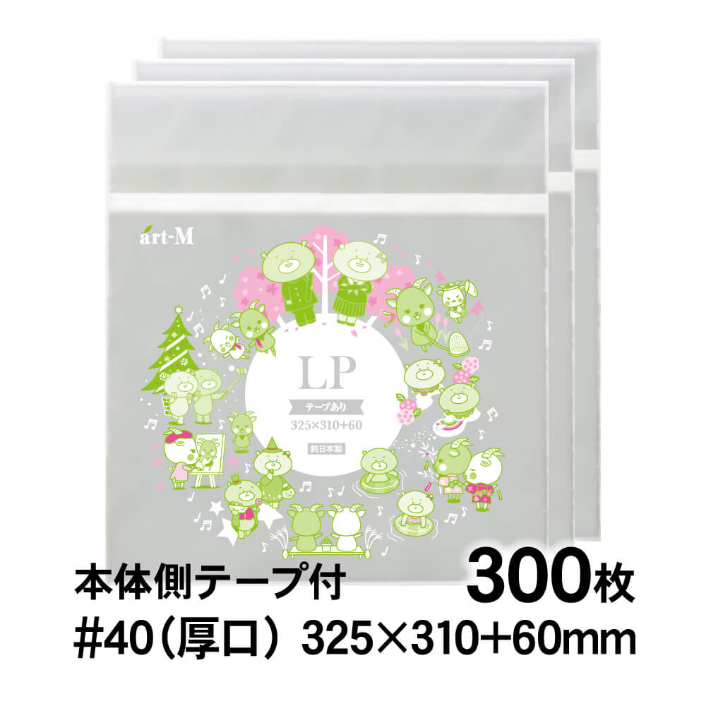 OPP袋 LP レコード用 本体側テープ付 300枚 40ミクロン厚(厚口) 325×310+60mm 透明袋 国産 二つ折り発送