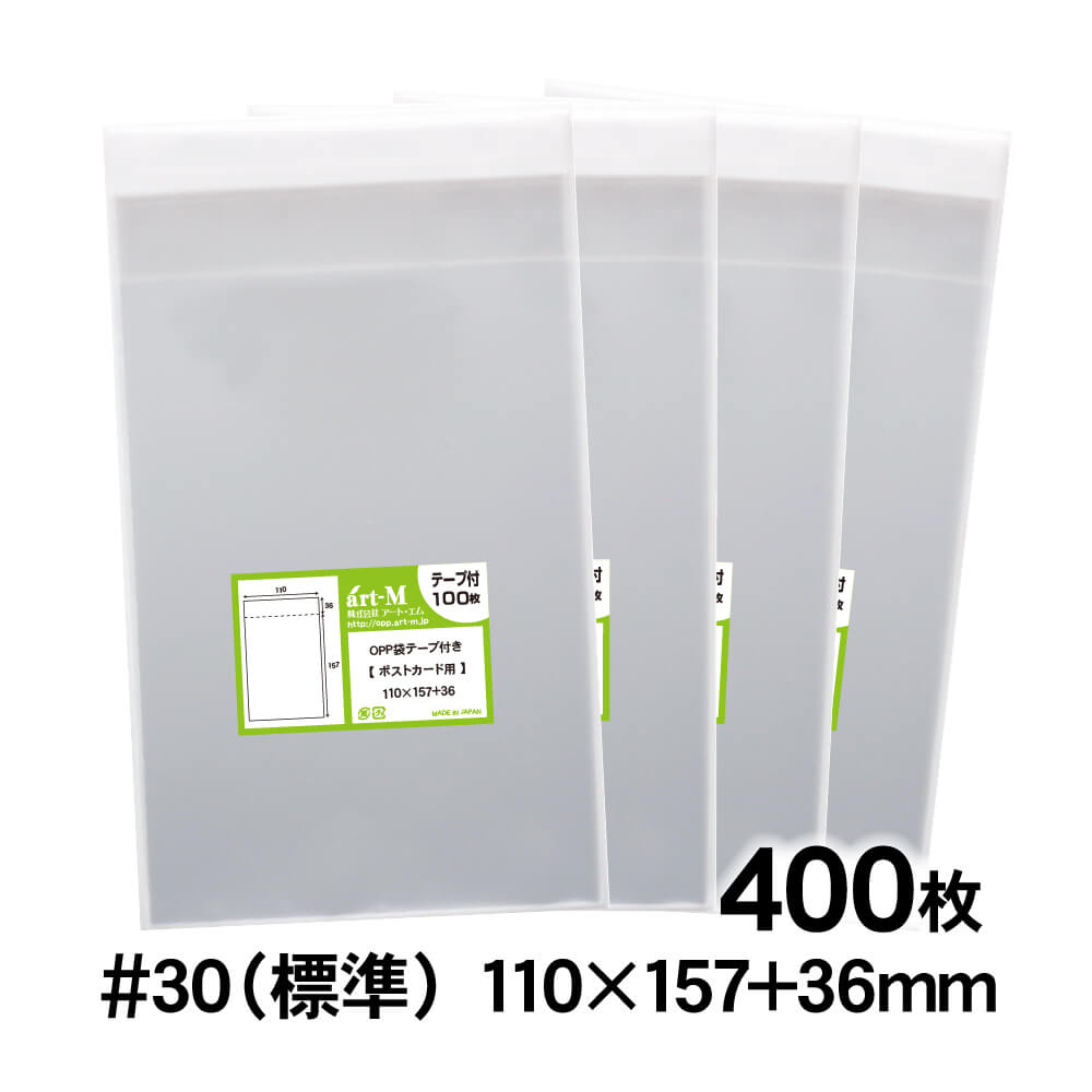 OPP袋 ポストカード用 テープ付 400枚 30ミクロン厚(標準) 110×157+36mm 透明袋 国産