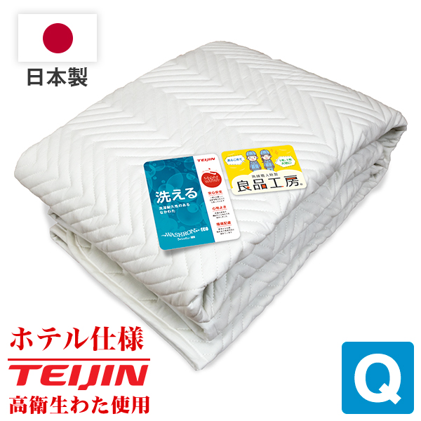 | ・日本有名メーカー「テイジン」の高衛生わたを使用! ・型崩れしにくい特殊加工「電光キルト」で耐久性バツグン! ・綿100%生地だから、汗をかいてもムレにくい! ・ゴムバンド式で敷布団やマットレスなど様々な厚さに対応! ・厳しい品質検査にクリアした「良品工房®」ラベル添付 ・お手持ちのボックスシーツと併用すればベッドパッドとしてもお使いいただけます。 ・安心の日本製 | |