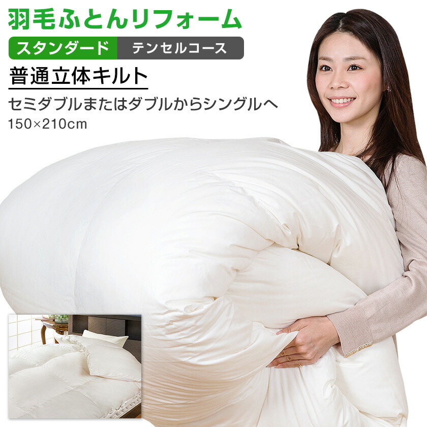 羽毛布団 打ち直し リフォーム 日本全国対応 スタンダード・テンセルコース セミダブルorダブル→シングルへ