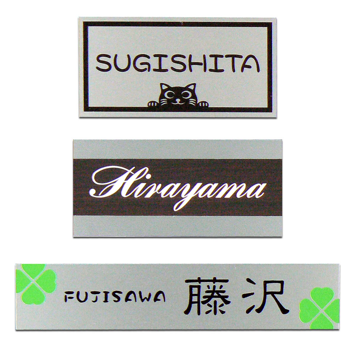 (この表札自体は磁石につきませんので取り付け面の磁石に付ける際はこのプレートが必要です。)
