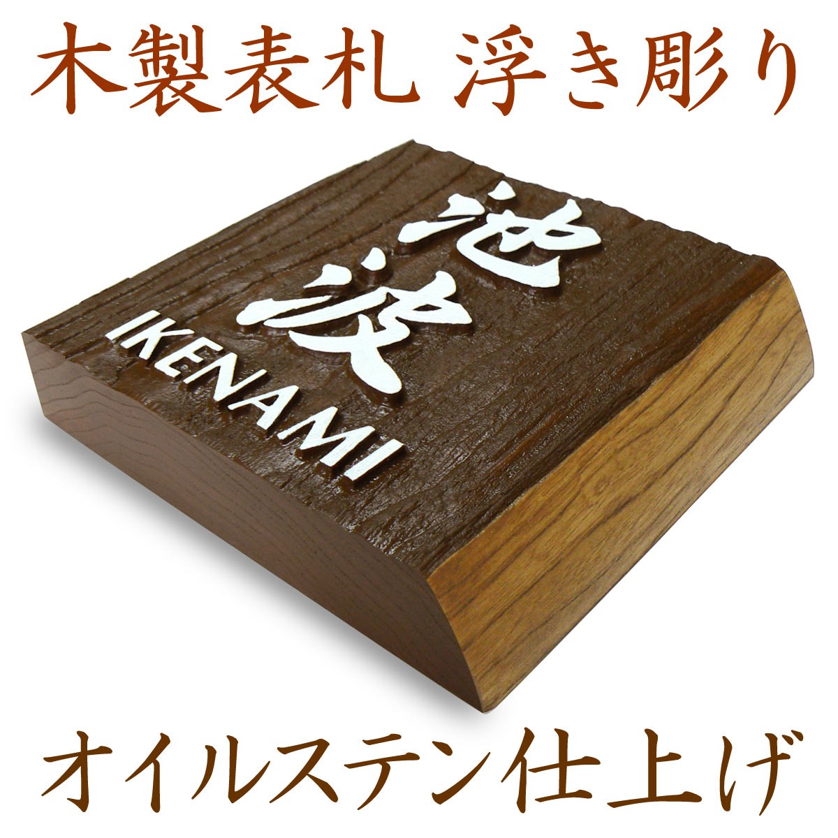 表札 木製表札 浮き彫り 正方形 オイルステン仕上げ