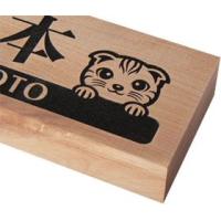 厳選したサクラのみを使用した銘木表札です。デザイン、イラストや書体は変更できます。裏面にダルマ落とし穴が空いているので皿ビスで簡単に取付できます。