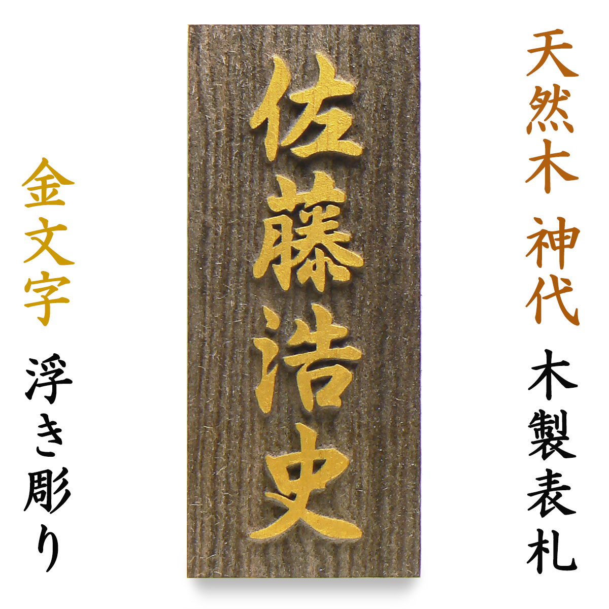 表札 木製表札 浮き彫り 戸建て 金色 天然木 神代