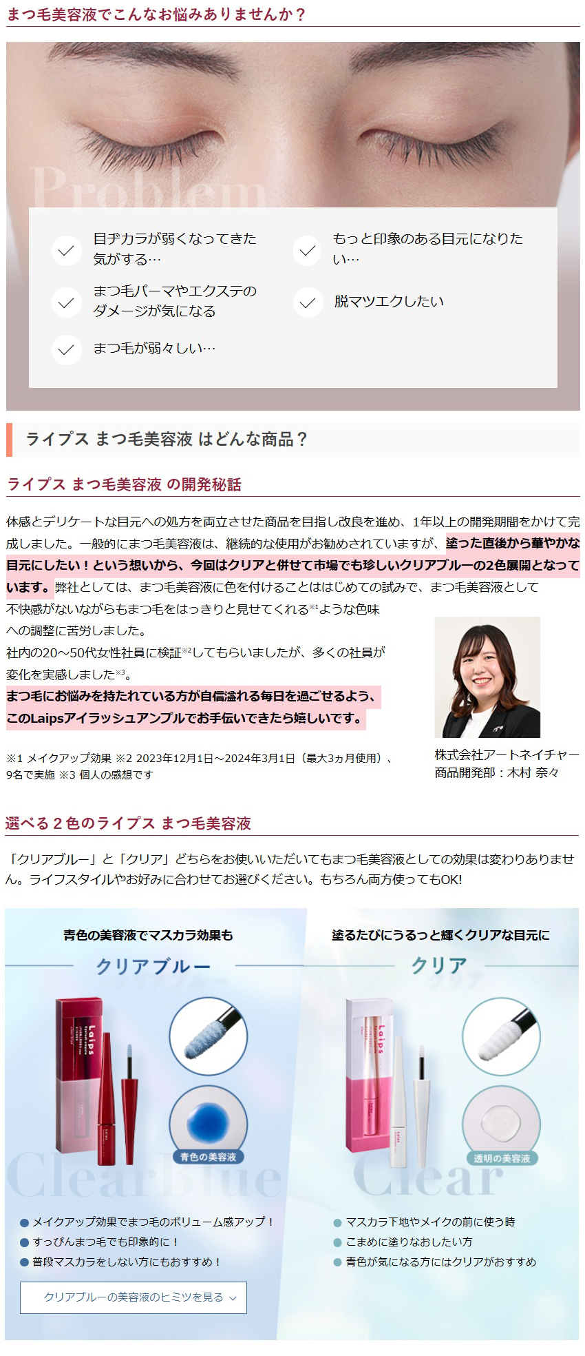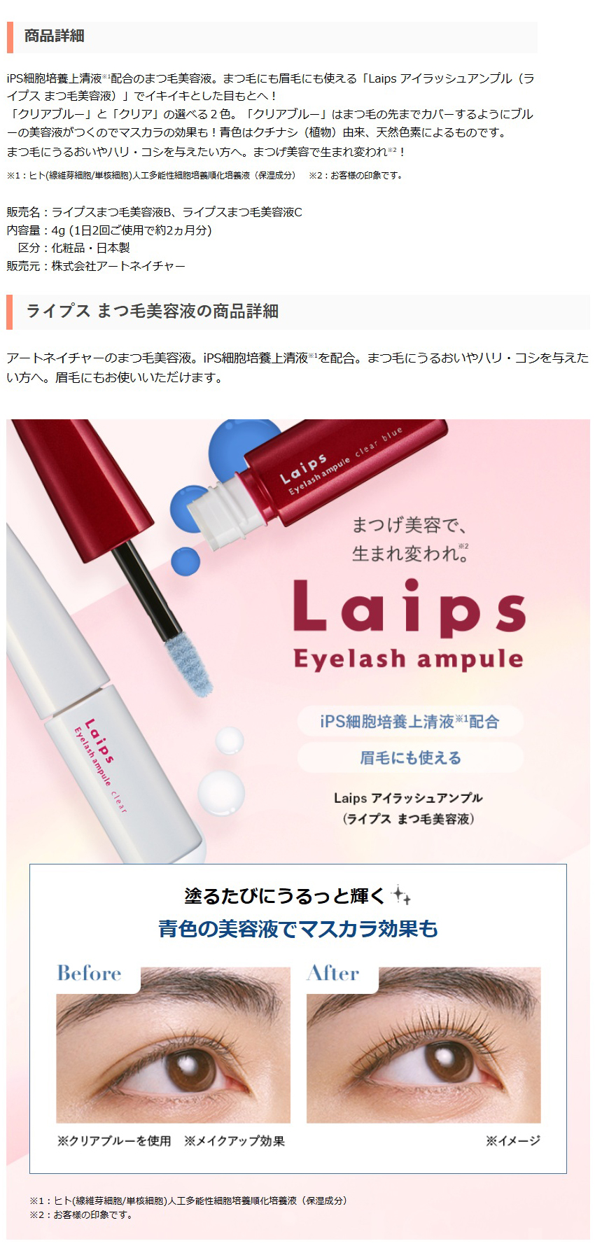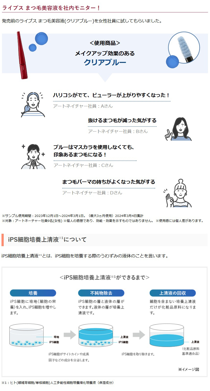 iPS細胞培養上清液※配合のアイテム「Laips(ライプス)」が誕生!まつ毛にうるおいやハリ・コシを与えたい方へ。 ※ヒト(線維芽細胞/単核細胞)人工多能性細胞培養順化培養液(保湿成分)