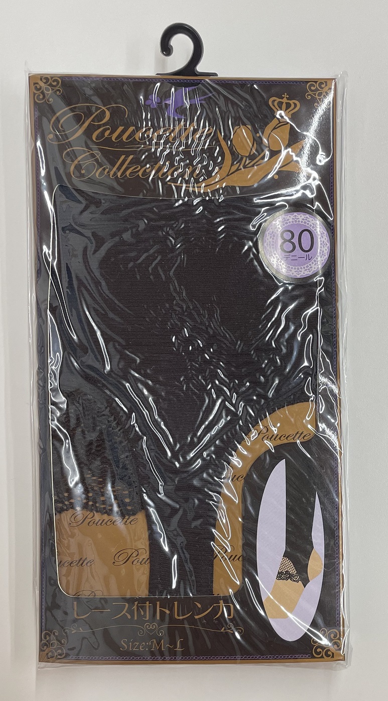 訳ありセール Poucette Collection レース付きトレンカ 80デニール ブラック M〜Lサイズ