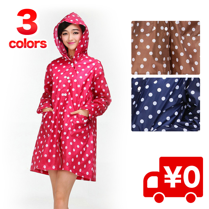 スタイリッシュ レディース レインコート 防水透湿性抜群 ドット柄 水玉 フリーサイズ 収納袋付