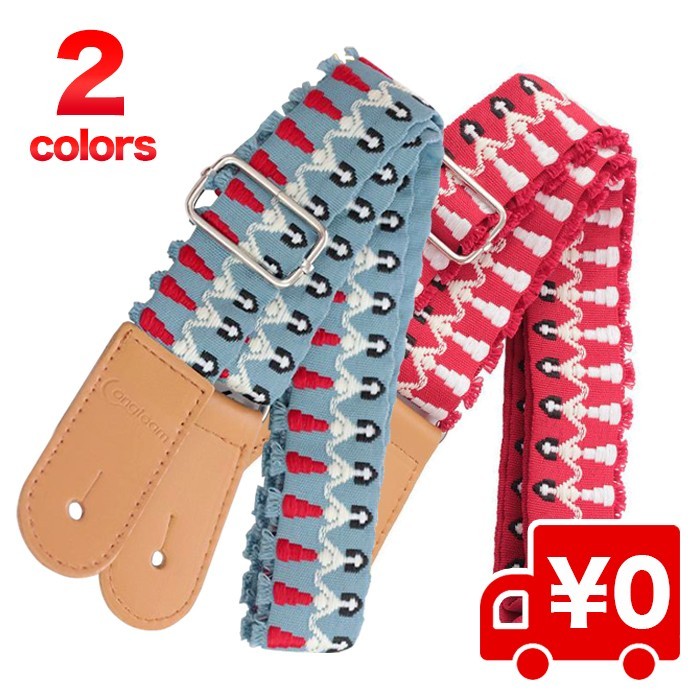 ウクレレ、ミニギター用のストラップです。肩に当たる部分は布製で、ハワイアン柄の模様がキュートです。サイズ調整も可能なのでお好みの長さでご使用いただけます。