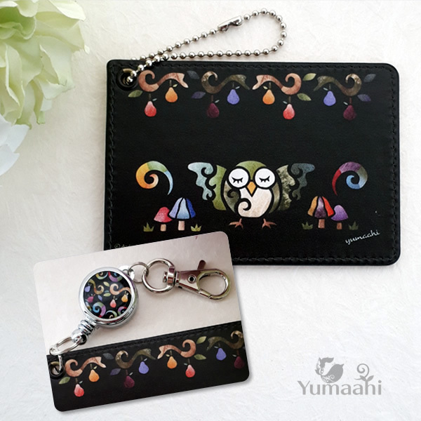 パスケース 「どんな色も」 定期入れ 選べる リール付き 梟 ふくろう フクロウ きのこ キノコ 果物 かわいい 動物 通勤 通学