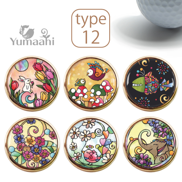 ゴルフマーカー マグネット 磁石入り おしゃれ かわいい 動物 選べる12タイプ 鳥 猫 うさぎ ぶた 象 梟 花 など 48~59 選べる本体カラー ゴールド シルバー