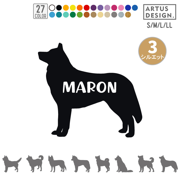 犬 ステッカー シベリアン ハスキー シルエット 名前 名入れ シンプル 車 ステッカー ドッグインカー Lサイズ