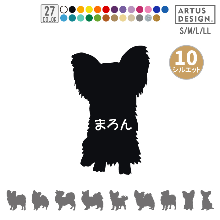 犬 ステッカー パピヨン シルエット 名前 名入れ シンプル 車 ステッカー ドッグインカー Mサイズ