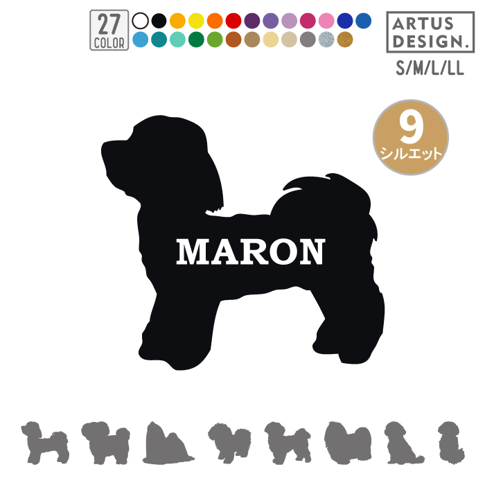 犬 ステッカー マルチーズ シルエット 名前 名入れ シンプル 車 ステッカー ドッグインカー Sサイズ