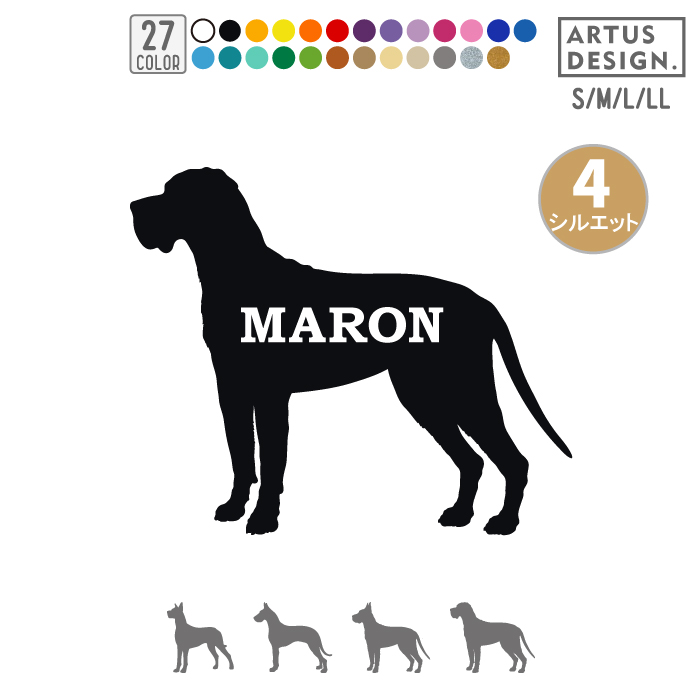 犬 ステッカー グレートデン グレートデーン シルエット 名前 名入れ シンプル 車 ステッカー ドッグインカー