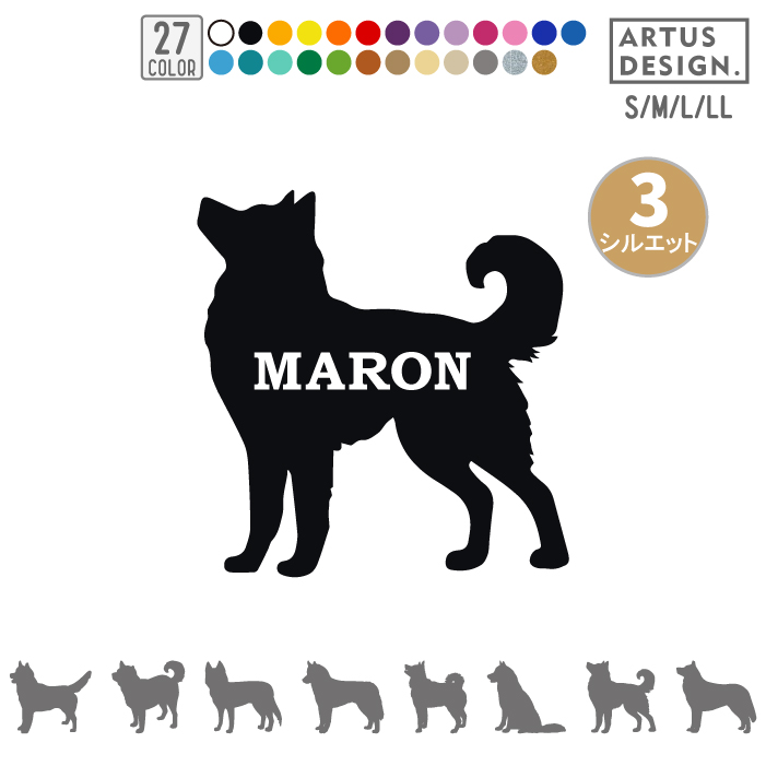犬 ステッカー シベリアン ハスキー シルエット 名前 名入れ シンプル 車 ステッカー ドッグインカー Sサイズ