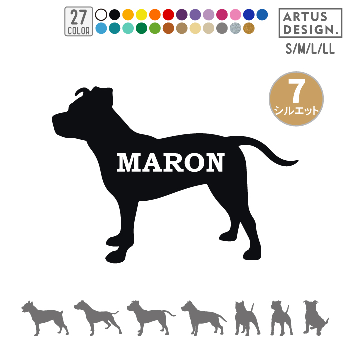 犬 ステッカー アメリカンピットブルテリア ピットブル シルエット 名前 名入れ シンプル 車 ステッカー ドッグインカー Sサイズ