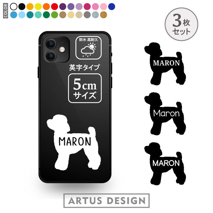 トイプードル ステッカー 3枚 セット 名前 名入れ スマホ 携帯 おしゃれ かわいい フードボウル シルエット 車 ステッカー プレゼント SSサイズ