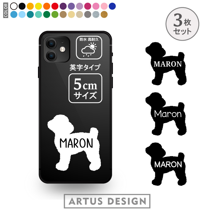 プードル ステッカー 3枚 セット 名前 名入れ スマホ 携帯 おしゃれ かわいい フードボウル シルエット 車 ステッカー プレゼント SSサイズ