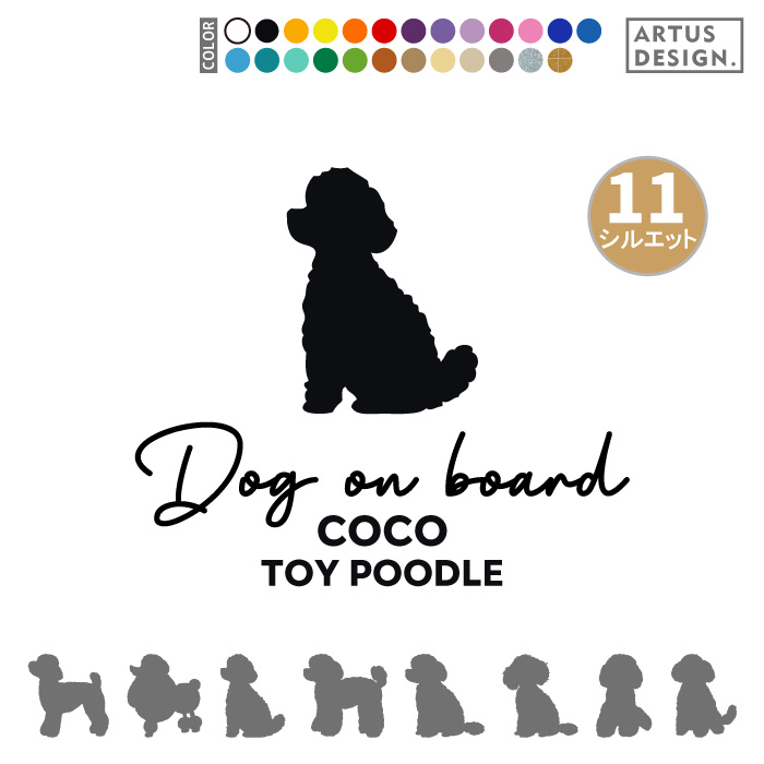 トイプードル ステッカー 車 犬 おしゃれ 筆記体 シルエット 多頭 名前 名入れ シンプル ステッカー ドッグインカー ミックス犬