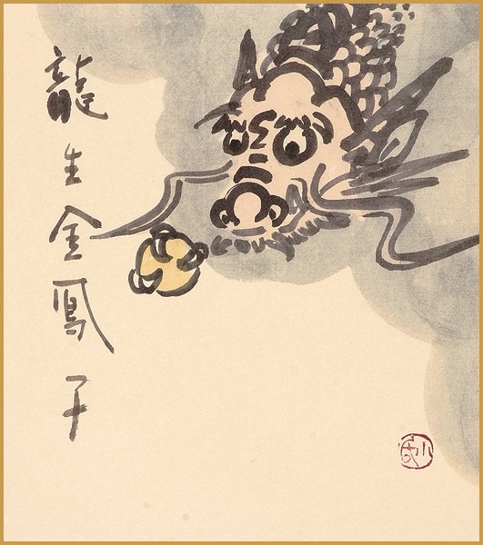 干支色紙 辰年 -龍自画賛 龍生金鳳子- 小林承鐵師筆 / たとう紙・解説付