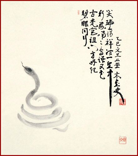 干支色紙 巳年 -蛇自画賛- 山田無文老大師筆 / たとう紙・解説付