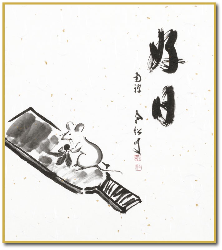 干支色紙 子年 -好日(子画賛)- 柴山全慶老大師 筆/ たとう紙・解説付
