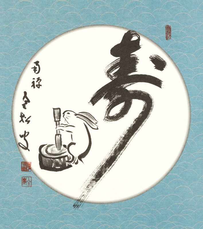 干支色紙 卯年 -寿(兎自画賛)-柴山全慶老大師 筆/ たとう紙・解説付