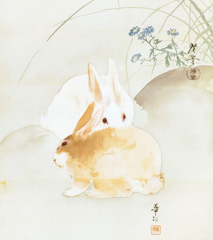 寺崎広業・鈴木華邨 筆の画を2023年度(卯年)の干支色紙に仕立てました。床の間や玄関先などへの飾り物、新年のご贈答に最適です。