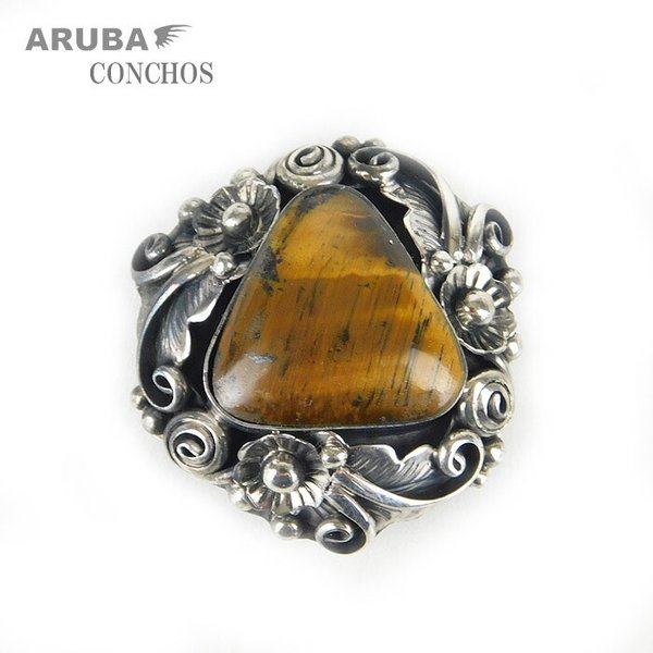 コンチョ 925 タイガーアイ 天然石 虎の目コンチョ 花柄 インディアンジュエリー(con25f-b11)