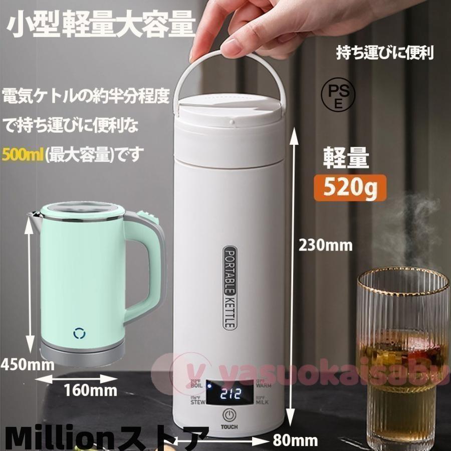 ポータブル電気ケトル 電気水筒 4段階温度設定 携帯性 電気ポット 500ml 小型 軽量 ミニ 魔法瓶ポット 漏れ防止 空だき防止機能保温機能 自動電源OFF