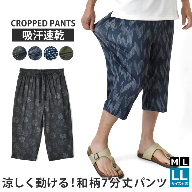 7分丈パンツ メンズ クロップドパンツ 吸汗速乾 和柄 ストレッチ 涼しい 爽快 ステテコ 総柄 セール 爆買