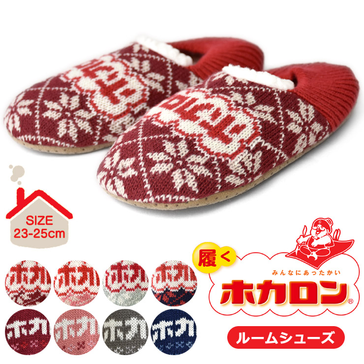 | 冬のおうち時間にぴったり♪ホカロンルームシューズが新登場!寒い季節も足元からほっこりしたい方におすすめなのが、ホカロンのレディースルームシューズです。見た目の可愛さと快適さを兼ね備えた婦人用スリッパで、毎日のリラックスタイムがもっと楽しみに。外側はやさしい風合いのニット編み、内側にはふわふわのボア素材を使用していて、履いた瞬間から足をすっぽり包み込むようなぬくもりを感じられます。冬らしさたっぷりの雪柄や、ちょっとレトロな雰囲気のロゴデザインもポイント。足元まで「かわいい」を楽しみたい方にぴったりな一足です。 | ||||