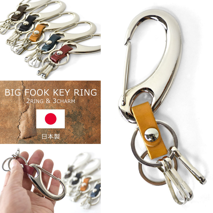 ビッグフックメタルの輝きと本革レザーのマットな質感が絶妙にMIXされたキーホルダー!ビッグフックのカラビナは持ちごたえがあり存在感抜群です。リングとチャームが充実しているので沢山の鍵を付ける事が出来ます。信頼の日本制で品質も安定しており信頼の高い商品です。