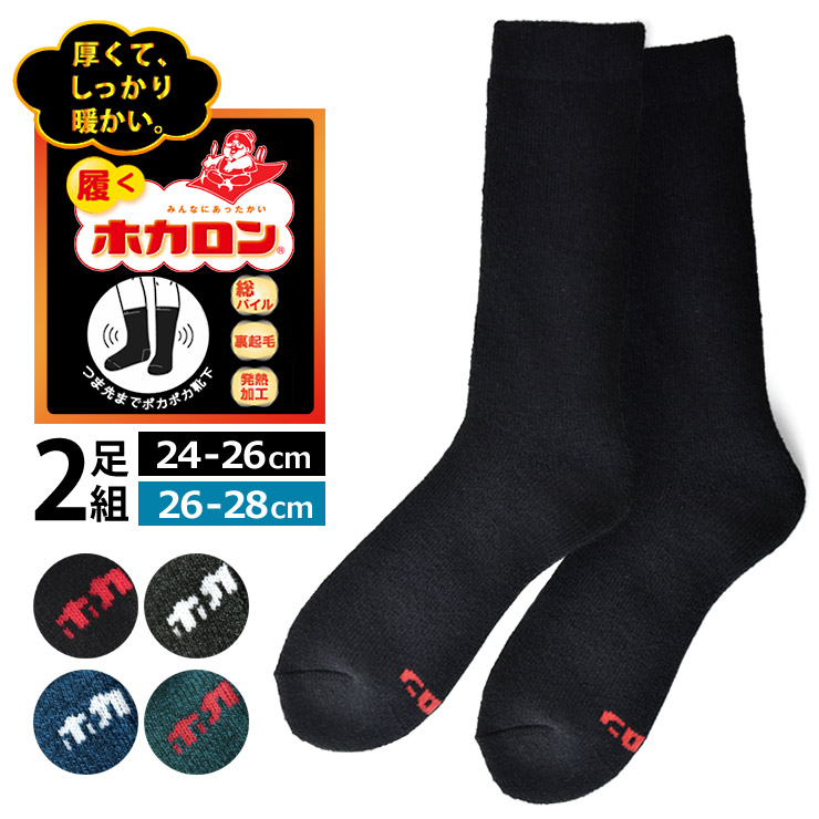 | 裏起毛×総パイル仕様!冬の足元を包み込む履くホカロンメンズ紳士用ソックスが新登場!冬の冷え込みに頼れる一足としておすすめなのが、ホカロンのメンズ用クルー丈ソックス(2足組)です。しっかりとした作りの総パイル生地に、内側はふんわり柔らかな裏起毛加工。足を通した瞬間から、やさしい暖かさに包まれます。クルー丈なので足元をしっかりカバーでき、寒い日にぴったり。ルームウェアに合わせて室内履き用としても活躍してくれるので、使い勝手も抜群です。まさに“履くホカロン”の名にふさわしい、冬の定番にしたいソックスです。 | ||||||